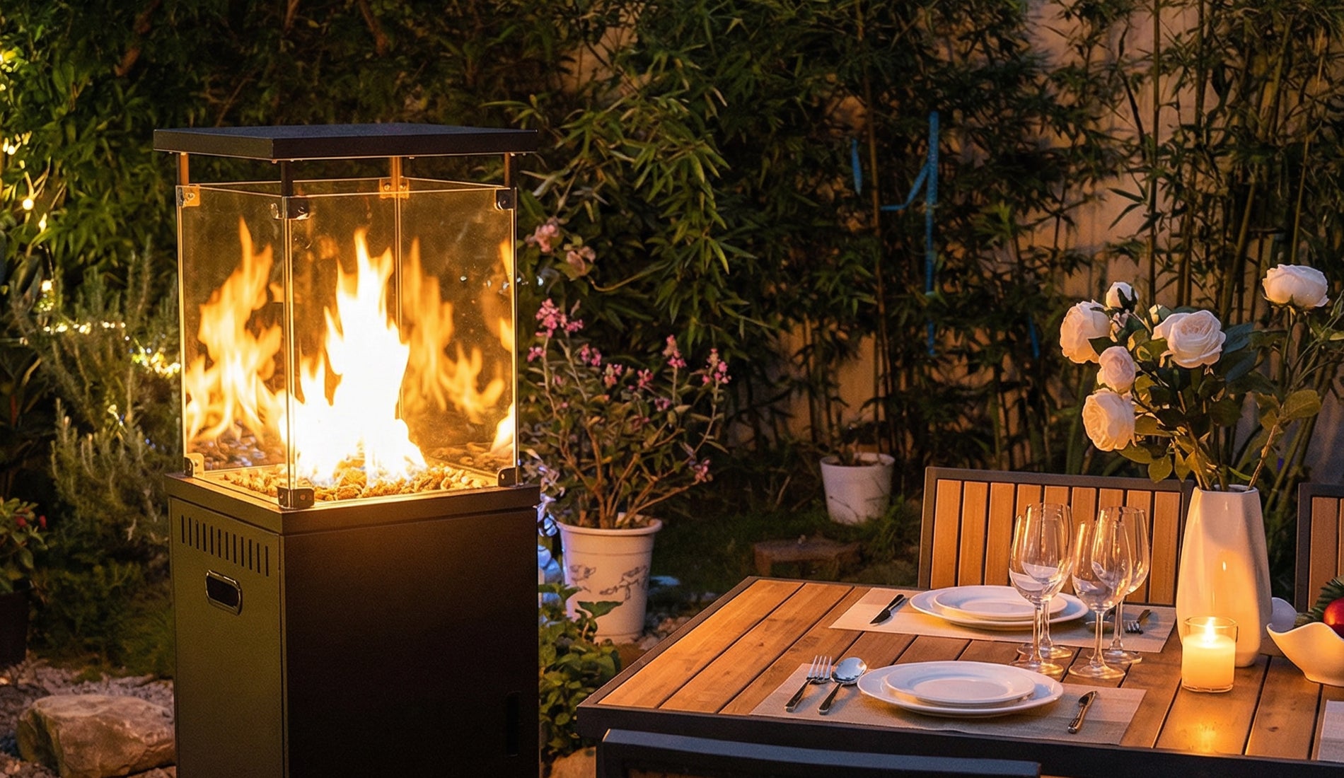 Enjoy cozy backyard moments with our stylish patio heaters — perfect for cool spring nights.