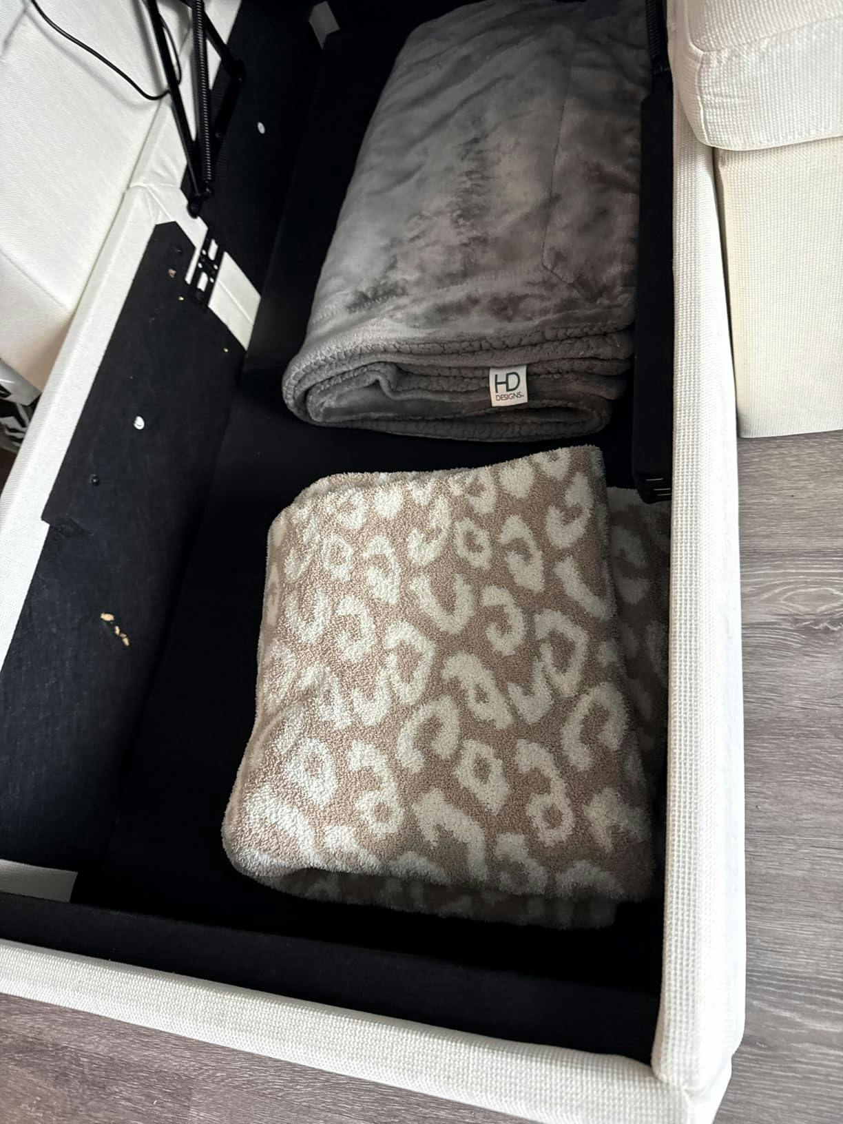 You get 3 large hidden compartments (perfect for bulky items like blankets and pillows), plus armrest storage and convenient side pockets for your remotes, iPad, or magazines. It helps keep your living area completely clutter-free.