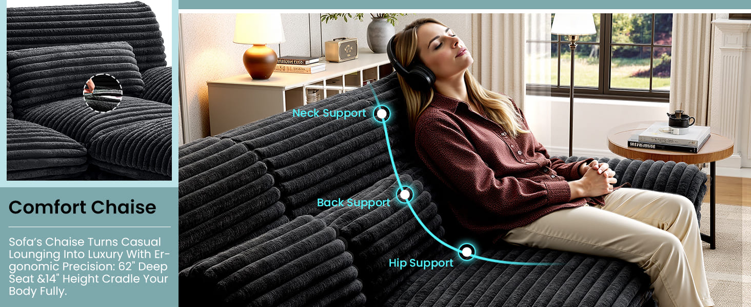 Adaptive Comfort: Filled with whole-piece, high-resilience foam that hugs your shape, plus pillows for targeted lumbar and neck support.