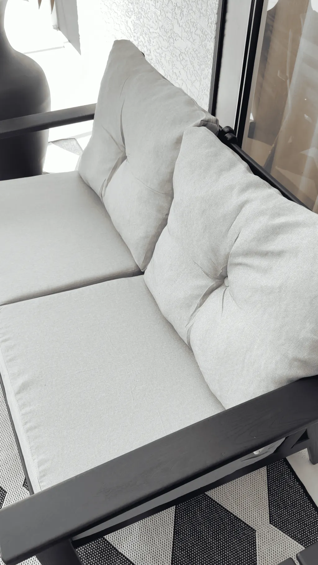 Wide seats with thick, high-resilience cushions provide a relaxed and supportive lounging experience.