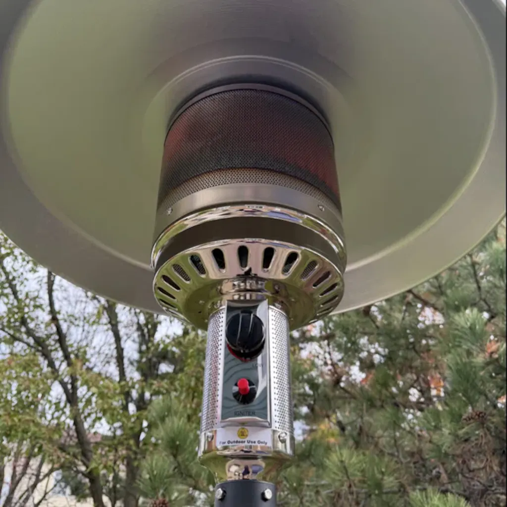 With 50,000 BTUs and a 20-foot heat range, it effectively heats small to medium-sized patios, decks, and backyard spaces swiftly and extensively.