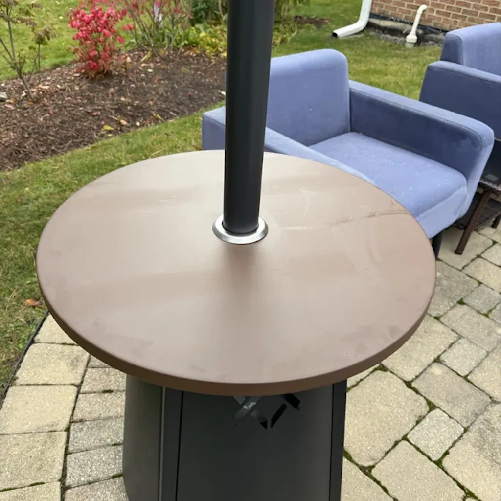 The large 27.6" diameter round storage tabletop is perfect for holding drinks, snacks, and more while you enjoy the warmth.