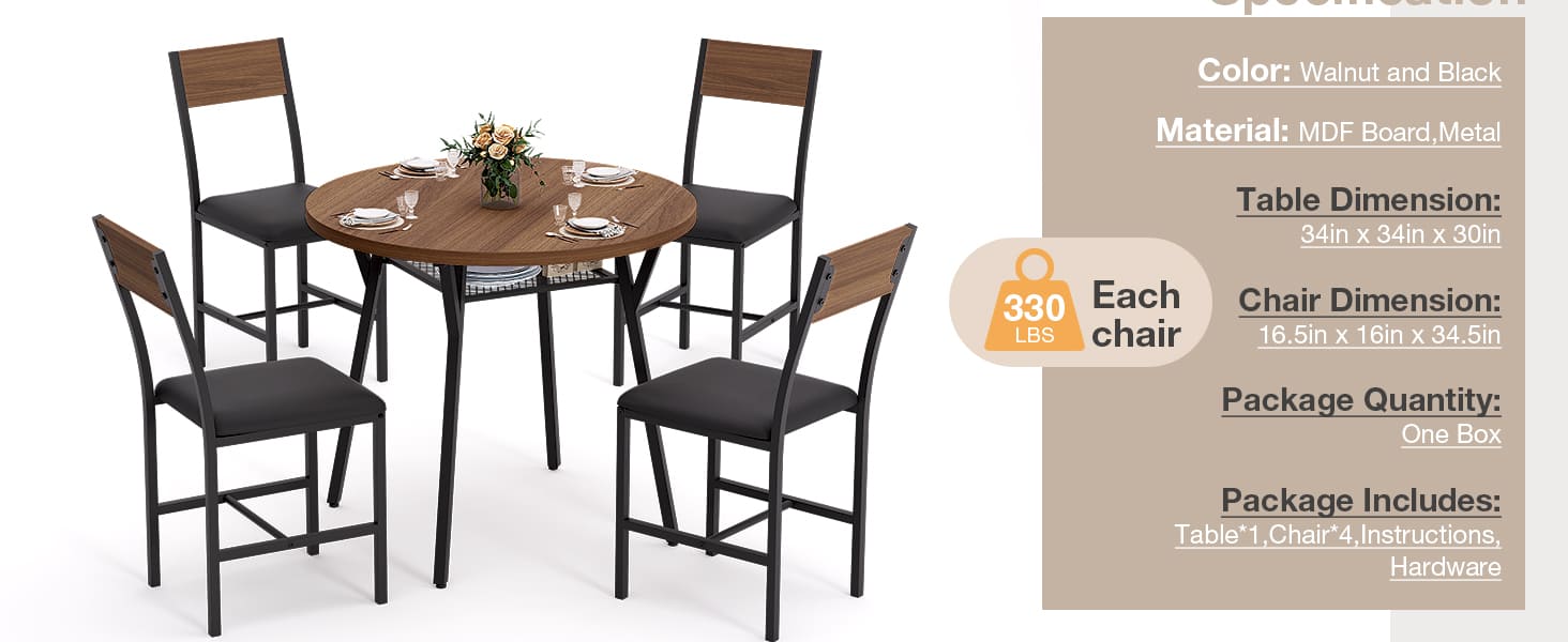 Absolutely! The compact 34" round table allows chairs to tuck neatly underneath, perfect for apartments or small dining areas.