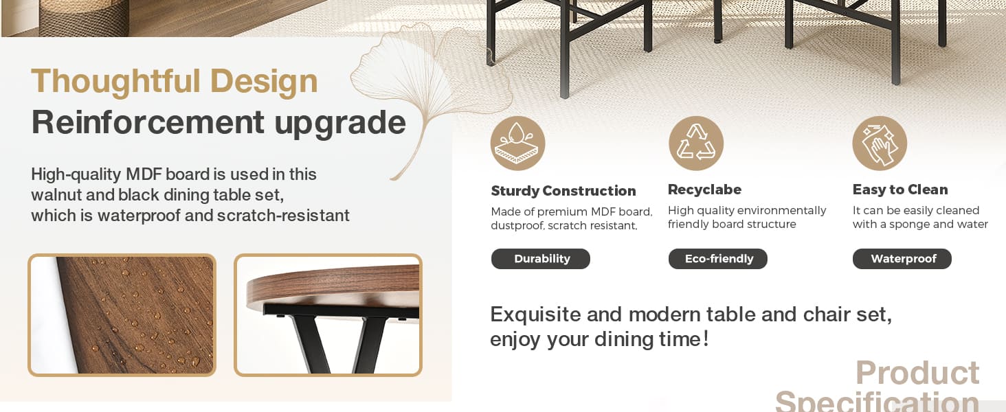 • Tabletop: High-quality, scratch/heat/water-resistant MDF