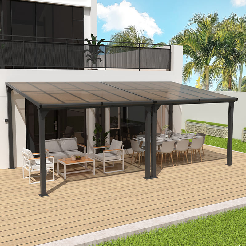 Hollow polycarbonate panels block UV rays while allowing soft light. Sloped design channels rain/snow away instantly, preventing pooling.