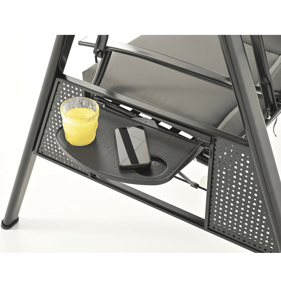 Convenient side trays hold your drinks and phone, then fold away neatly when not in use.
