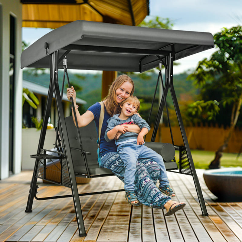 Adjustable Canopy & Weather-resistant: The porch swing has an adjustable canopy that can be set at various angles to provide optimal shade. The fabric of the swing canopy is made of polyester, which has better weather resistance and can be used outdoors for longer than similar swings