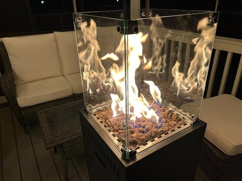 Perfect for patios, gardens, cafés, and decks, the 360° glass tube design offers a stunning flame view. The faux stone finish blends seamlessly with any outdoor décor while creating a cozy, inviting atmosphere.