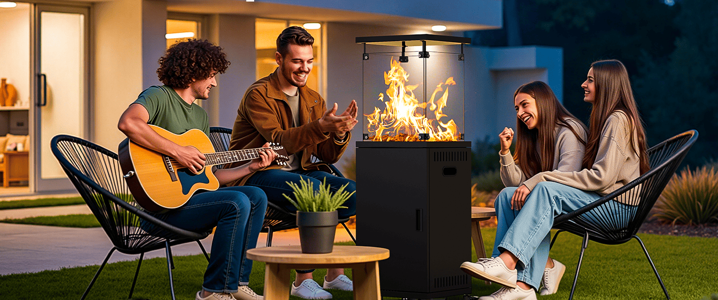Nestles neatly into balcony corners or pairs with dining sets as a coffee table. Lightweight enough for one-person setup, yet sturdy enough to hold drinks or decor when not heating.