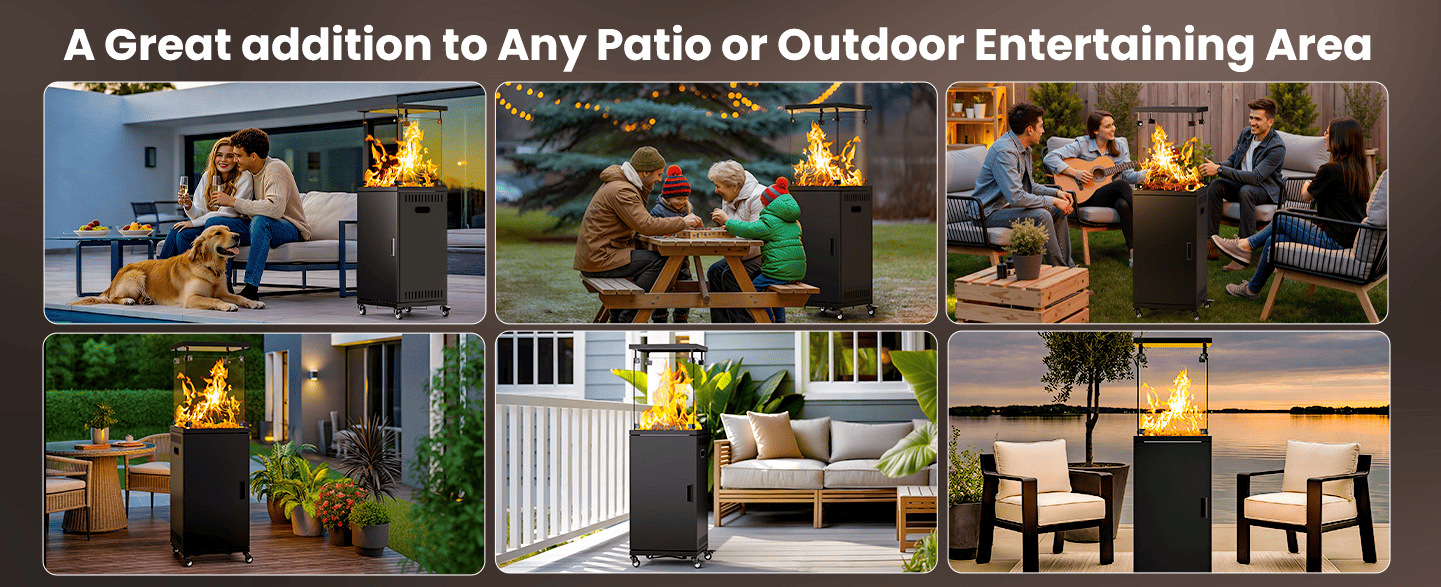 Durable with Waterproof Cover: Made with double tempered glass shields and a stainless steel burner, this heater is built for long-lasting outdoor use. CSA certified and paired with a waterproof, dust-proof PVC cover, it stays protected year-round.