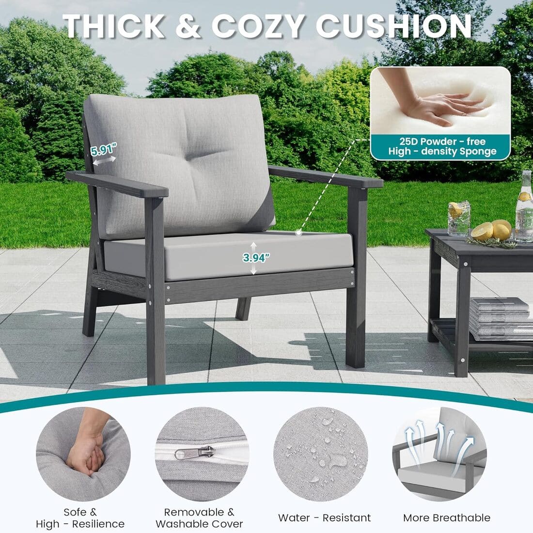 Soft & Comfy Cushions: Featured 5.91" back cushions and 3.94" seat cushions, filled with 25D powder-free high-density sponge for softness and resilience.